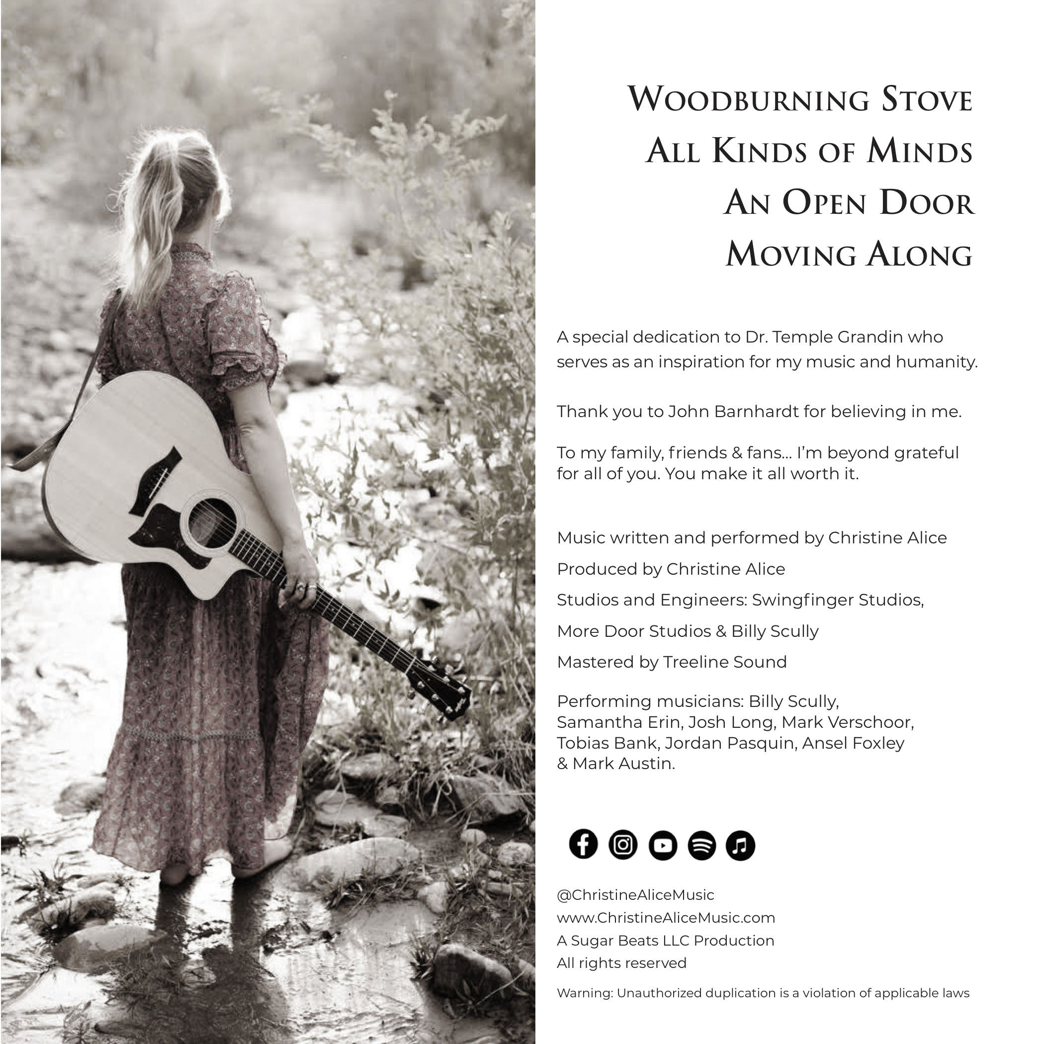 Christine Alice is a multifaceted artist whose talent spans singing, songwriting, performing, acting, & music production. With a voice that captivates and lyrics that resonate, Christine has established herself as a dynamic presence in the music industry. Born and raised in the mountains just west of Fort Collins, CO she grew up listening to a diverse musical collection ranging from pop, country, rock, classical, to world music & beyond. The original music she crafts is both deeply personal and universally relatable. As a performer, she brings an electrifying energy to the stage, leaving audiences spellbound with her powerful vocal delivery and emotive performances. Her unique blend of musicality and charisma has garnered her a loyal fan base and critical acclaim, making her live shows a must-see experience.
